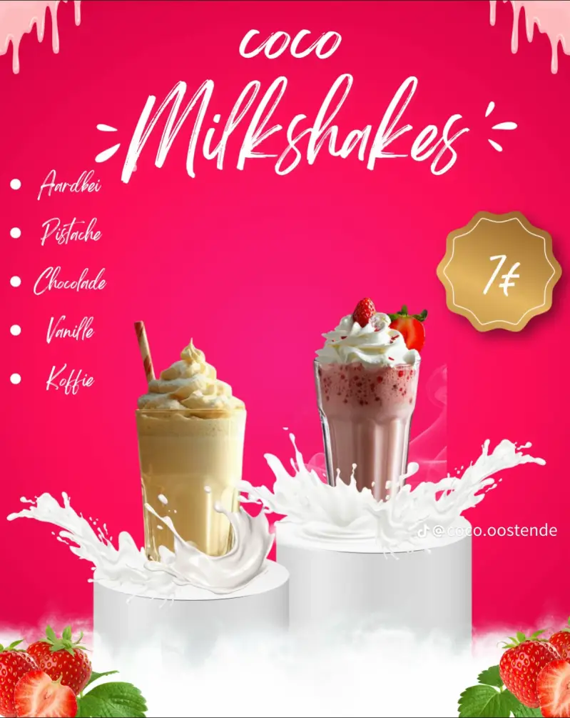 Ontdek de heerlijke smaken van Koffie en Cake in Oostende. Van warme koffie tot verfrissende milkshakes, wij hebben voor elk wat wils. Bekijk hieronder ons volledige menu en laat je verleiden!